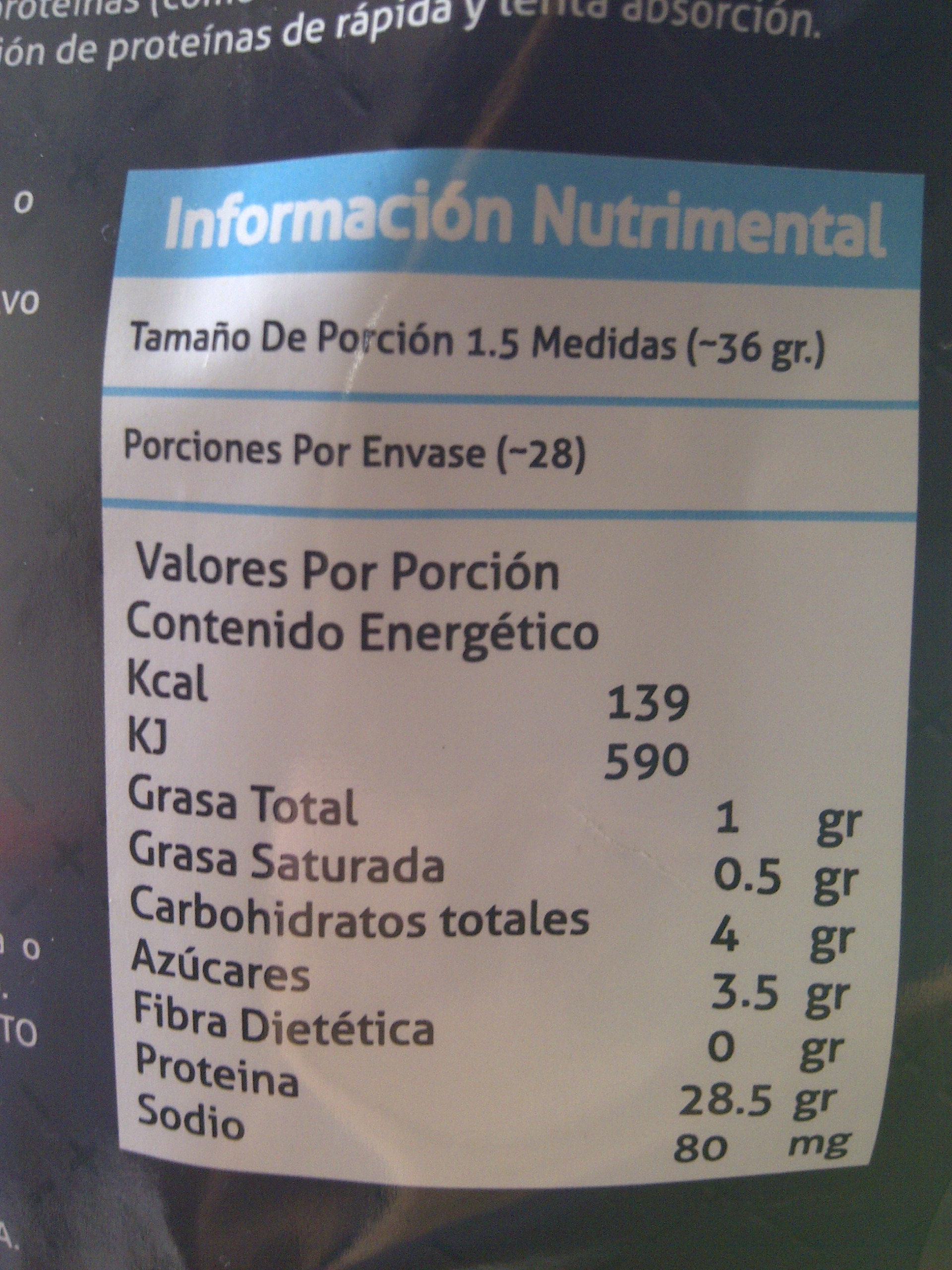 Como esta etiqueta que corresponde a una proteína en polvo: