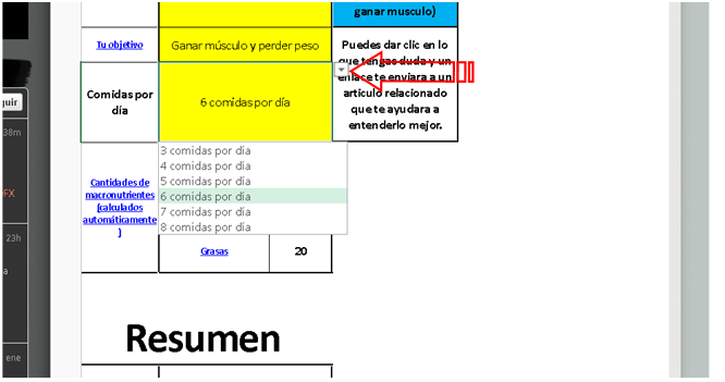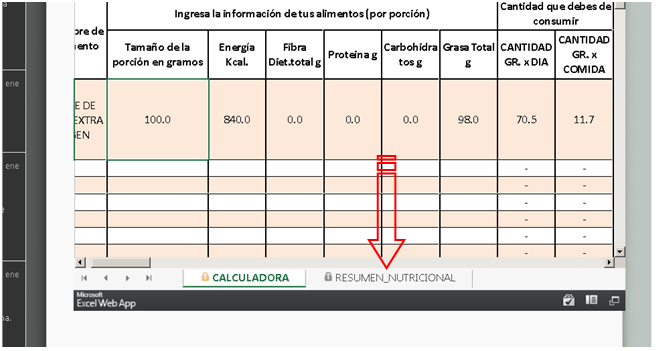 Y finalmente si quieres tener acceso al resumen nutricional simplemente da clic en la pestaña de «RESUMEN_NUTRICIONAL»: