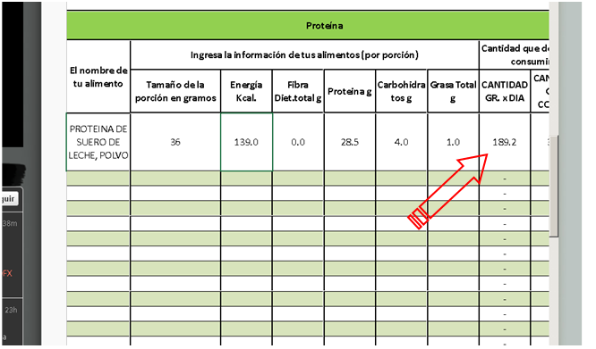 Ahora introduce la información de tus alimentos por cada uno de los tipos de macronutrientes, una vez que introduzcas los datos podrás ver la cantidad que deberás consumir: