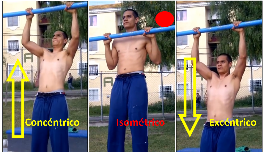 Esto anterior es solo para darnos cuenta de lo que pasa individualmente a cada musculo, pero este mismo principio aplica en todos los ejercicios básicos de calistenia, con la diferencia de que al realizar cualquiera de ellos estaremos dándole estas tres fases de contracción muscular a varios de ellos al mismo tiempo.