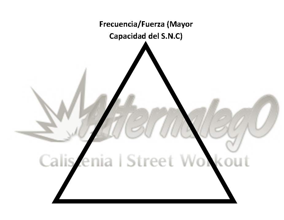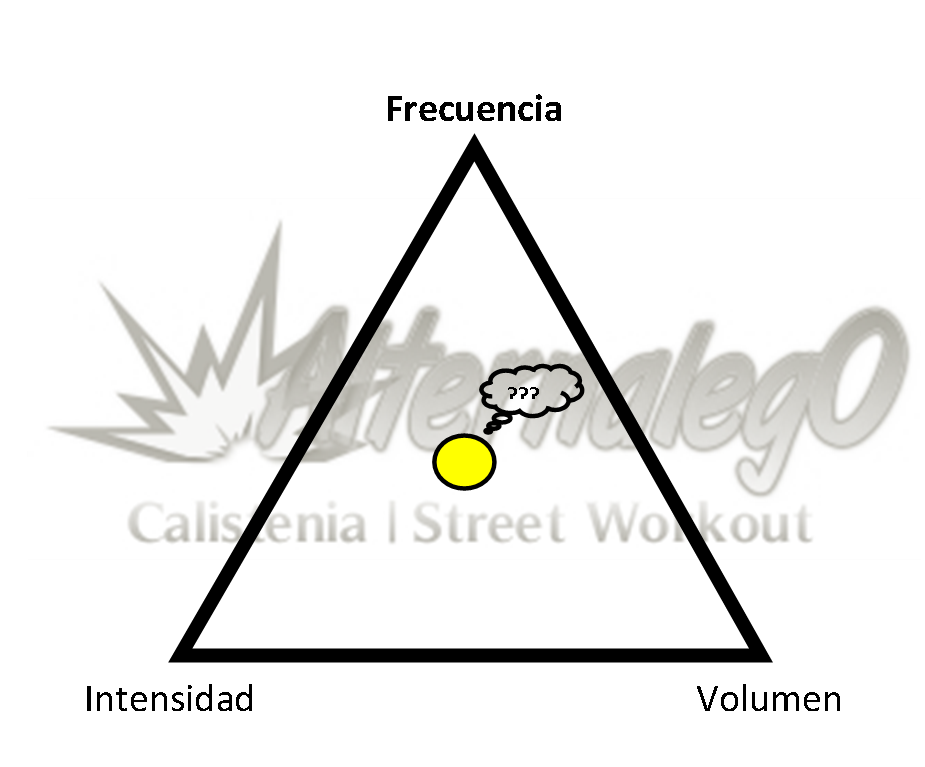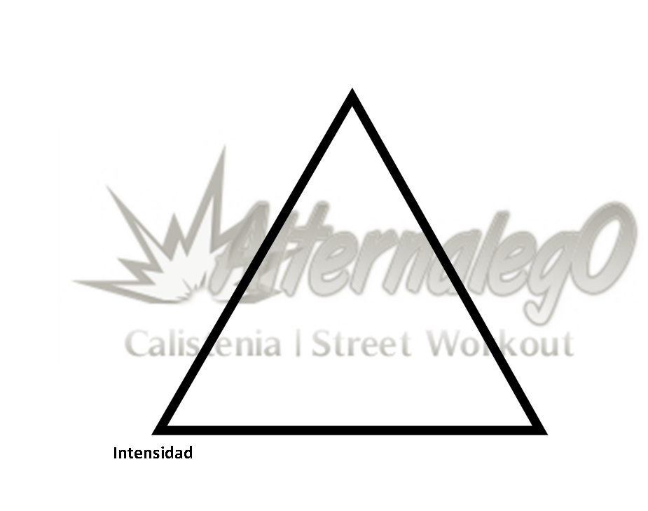 Grafica Relación frecuencia, intensidad y volumen, matriz de planeación y revisión de rutinas, alternalego.com, alternalego, imagen completa triangulo amarillo