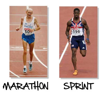 Como lo vemos en la imagen un maratonista tiene un cuerpo extremadamente delgado pero un velocista no, al contrario tiene un cuerpo bastantes músculos. La única diferencia es la manera en la que cada uno realiza su cardio.